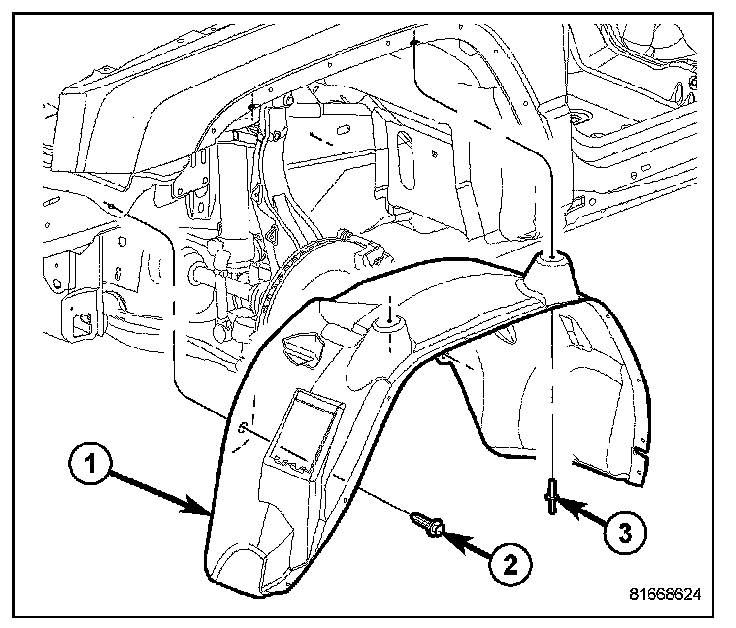 1. Position the antenna body (3) through the mounting hole in the top of the fender.