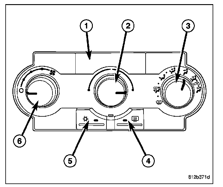- a rotary control knob for fan speed selection and turning the heating-A/C system off (6).