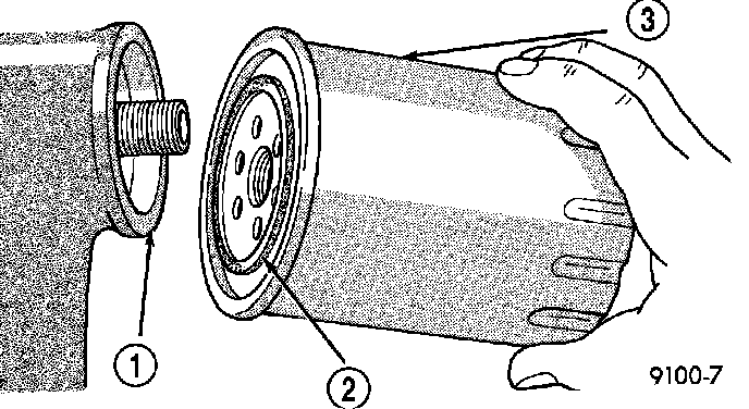 1. Lightly lubricate oil filter gasket (2) with engine oil.