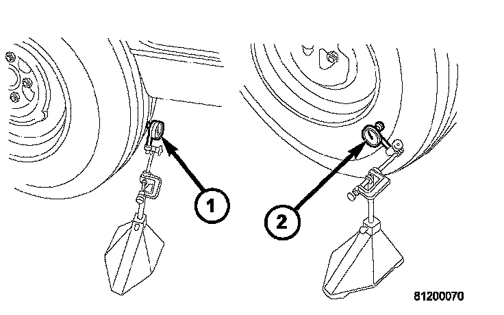 6. Check radial runout. If still excessive, mark tire sidewall, wheel, and stud at point of maximum runout and proceed to Method 2.