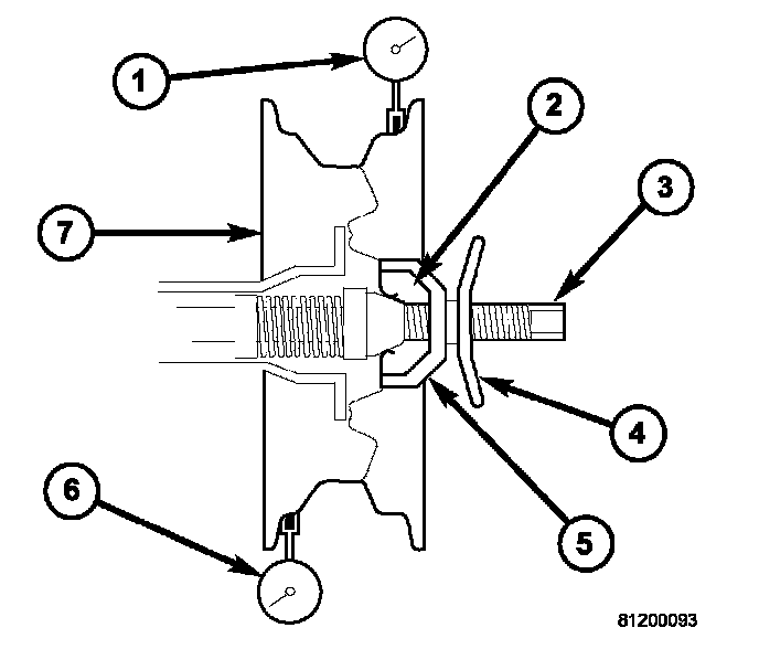 Lateral runout of more than 2.0 mm (0.080 inch) measured near the shoulder of the tire may cause the vehicle to shake.