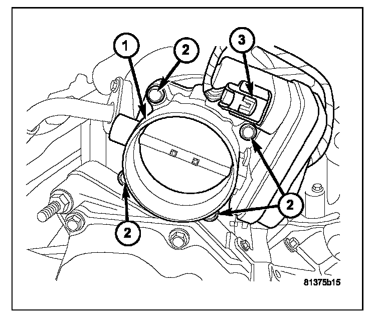 3. Remove four throttle body mounting bolts (2).