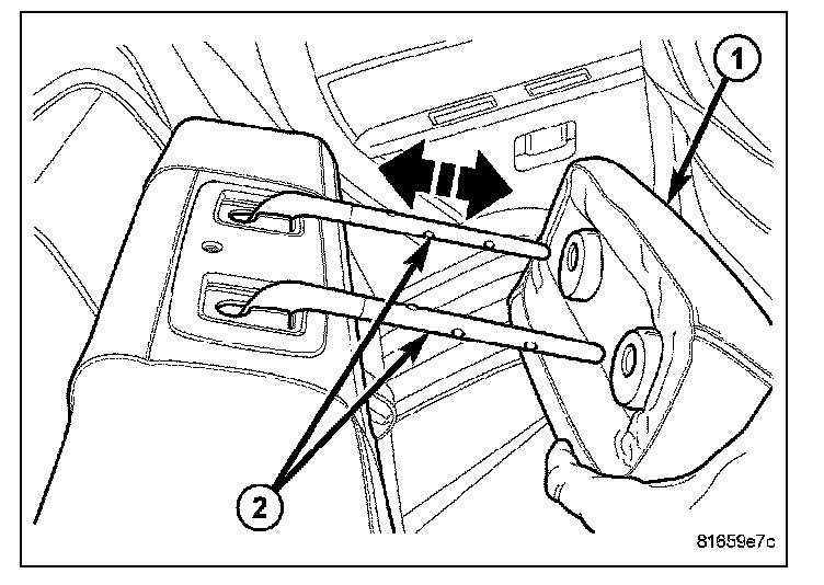 3. Remove the headrest (1) from the headrest bracket and hinge (2).