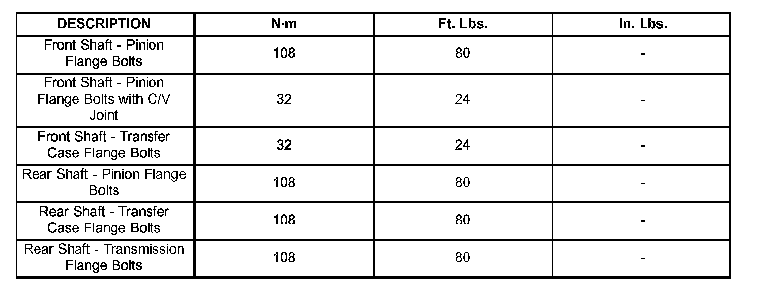 TORQUE SPECIFICATIONS: