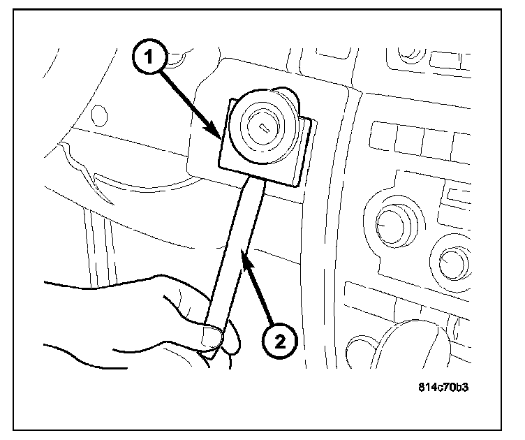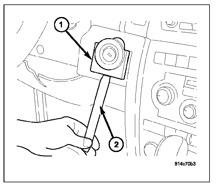 1. Install ignition key into lock cylinder (1). Rotate key to "ON" position (retaining tab on side of lock cylinder (3) can now be depressed).