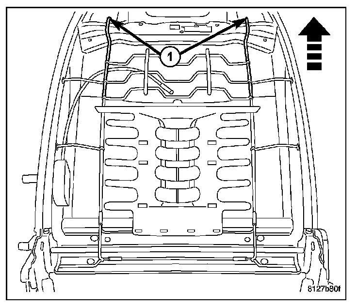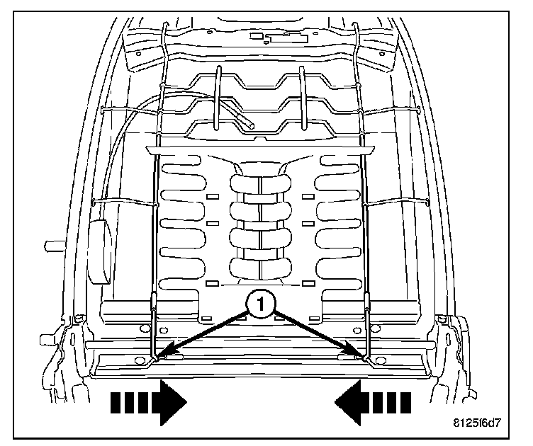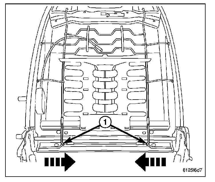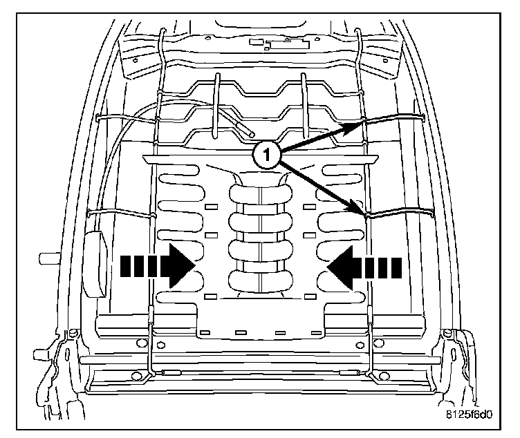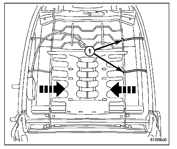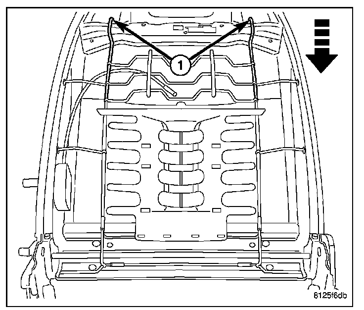 5. Pull the upper support wires (1) down and release the lumbar mat from the seat back frame.