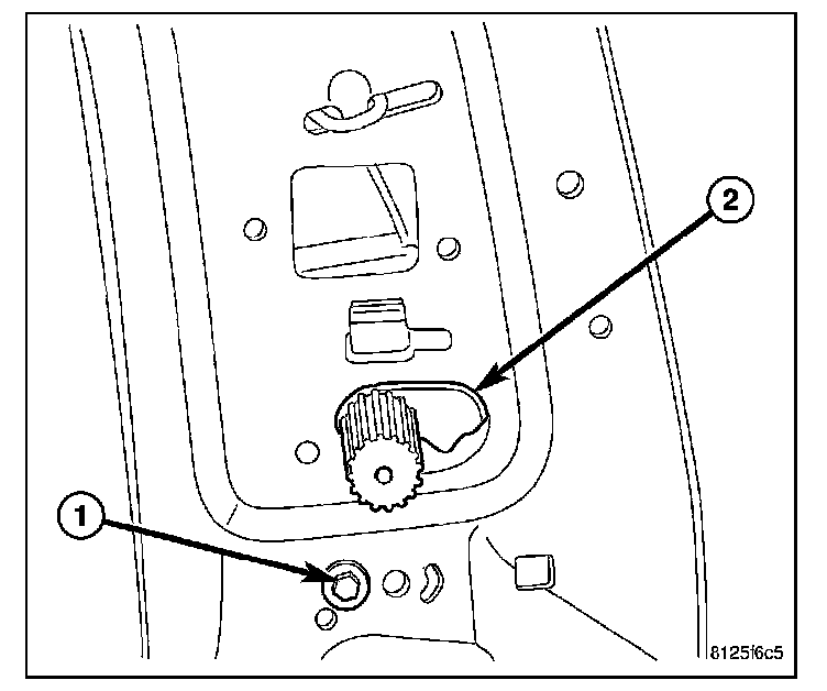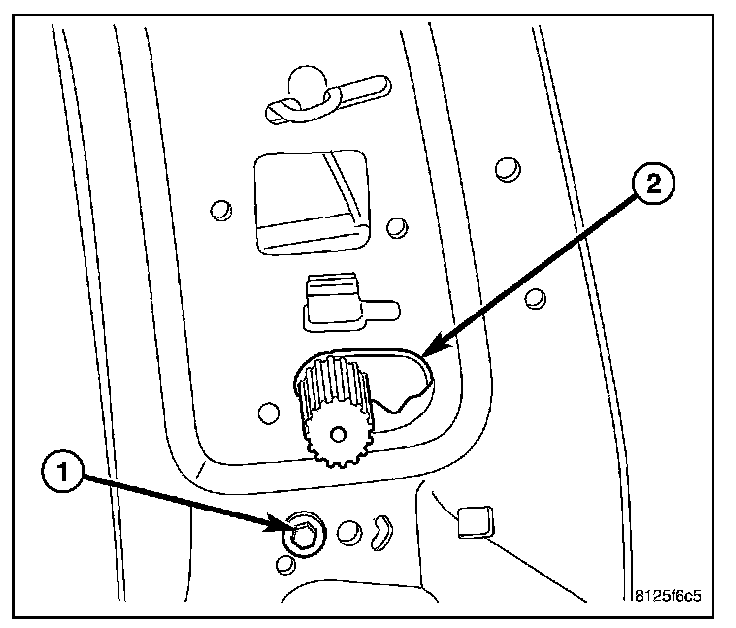 6. Remove the rivet (1) and remove the lumbar mechanism (2).