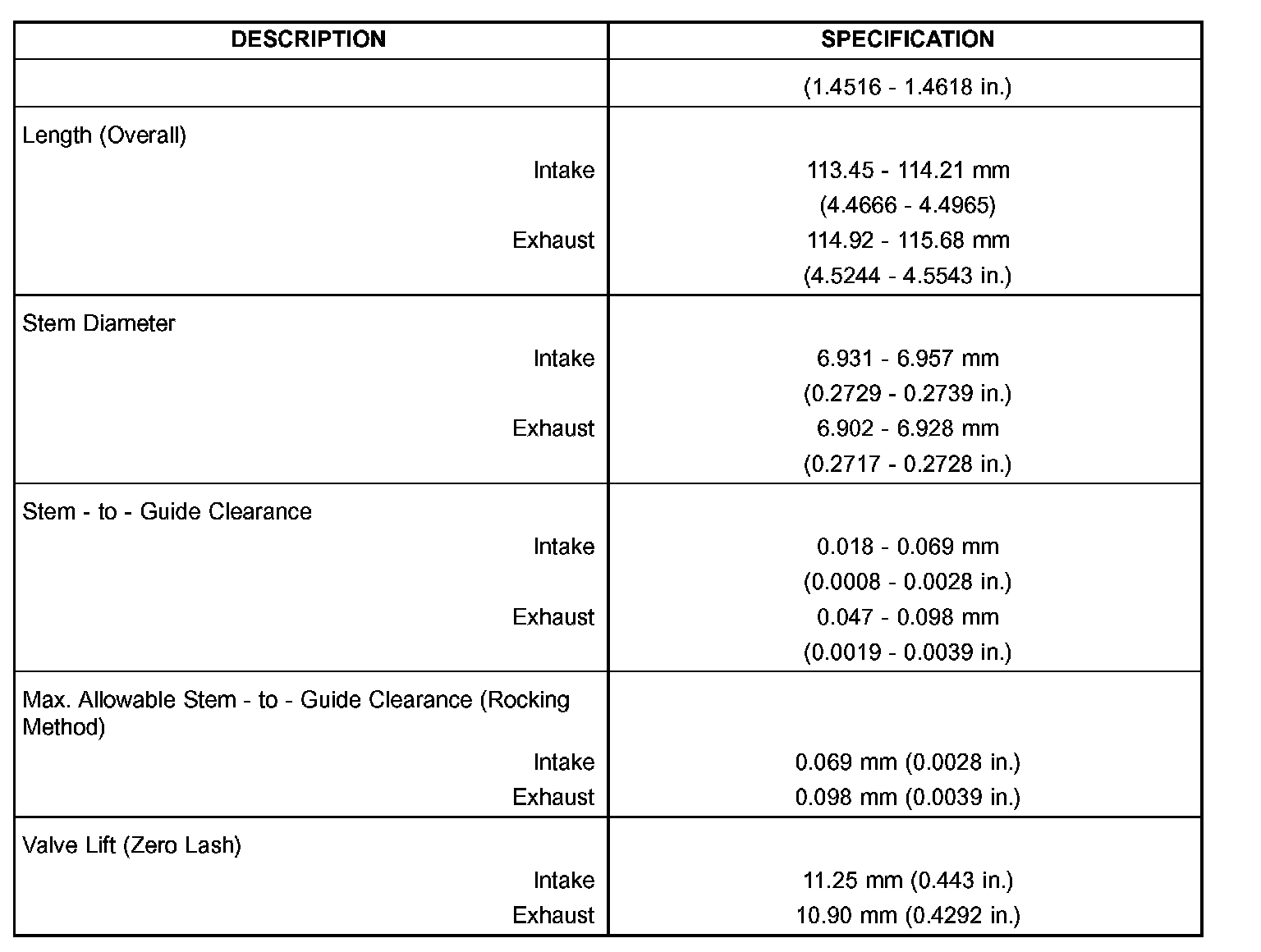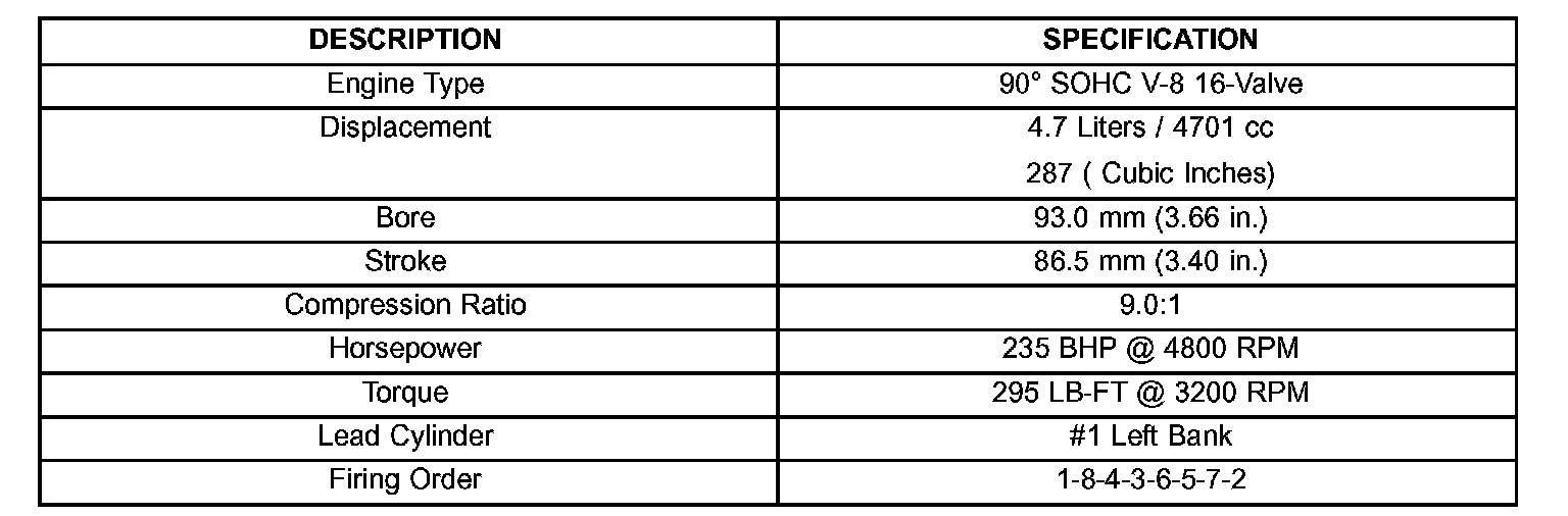 SPECIFICATIONS - 4.7L ENGINE