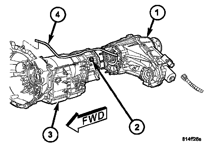18. Install transmission fill tube (2) and dipstick (3) to the transmission (1).