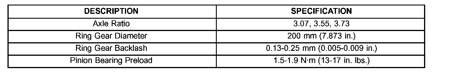 TORQUE SPECIFICATIONS: