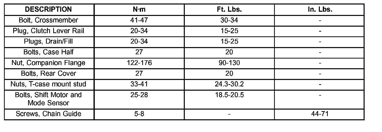 TORQUE SPECIFICATIONS: