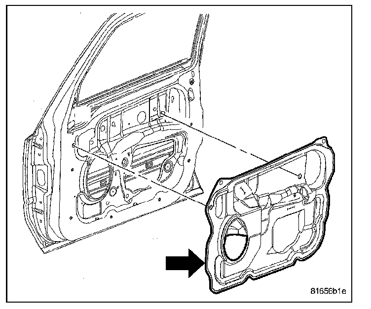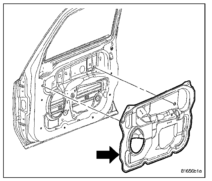 2. Remove the watershield from the inside of the front door. Refer to Front Door Panel.