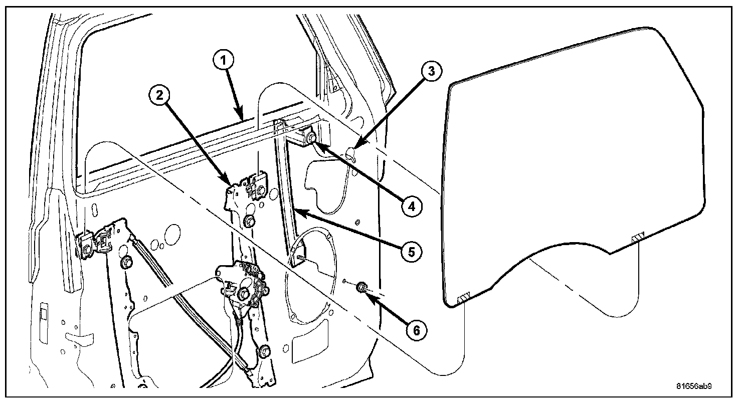 4. Tighten the bolts in each of the window regulator glass clamps to 12 N.m (105 in.lbs).