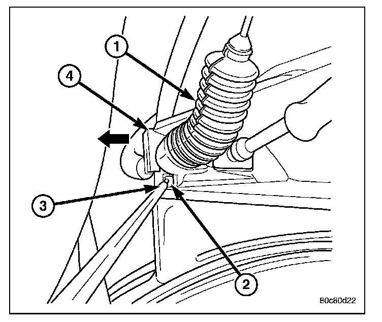 4. Using a pick or small screwdriver, press release tab (2) to release plastic cable mount from bracket. Press on tab only enough to release cable from bracket. If tab is pressed too much, it will be broken. Slide plastic mount (4) towards right side of vehicle to remove throttle cable from throttle body bracket.