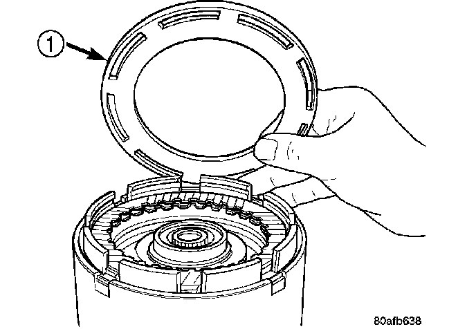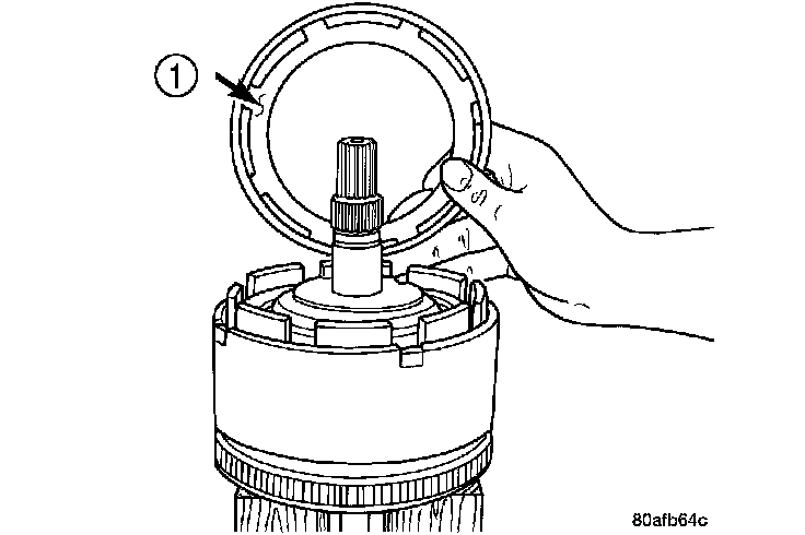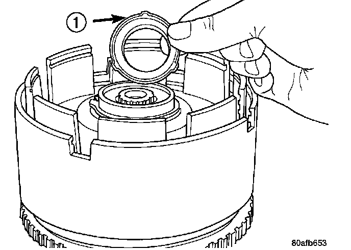 15. Install the OD/UD clutch reaction plate (1). The OD/UD clutches reaction plate has a step on both sides. Install the OD/UD clutches reaction plate tapered step side up.