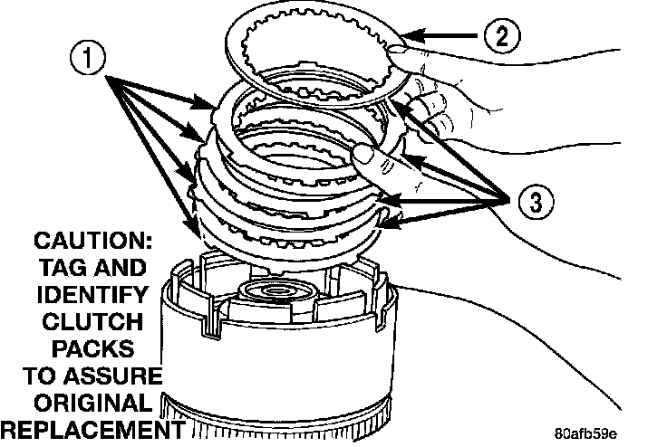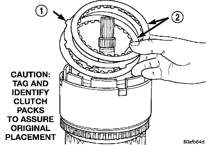 NOTE: Tag overdrive clutch pack for reassembly identification.