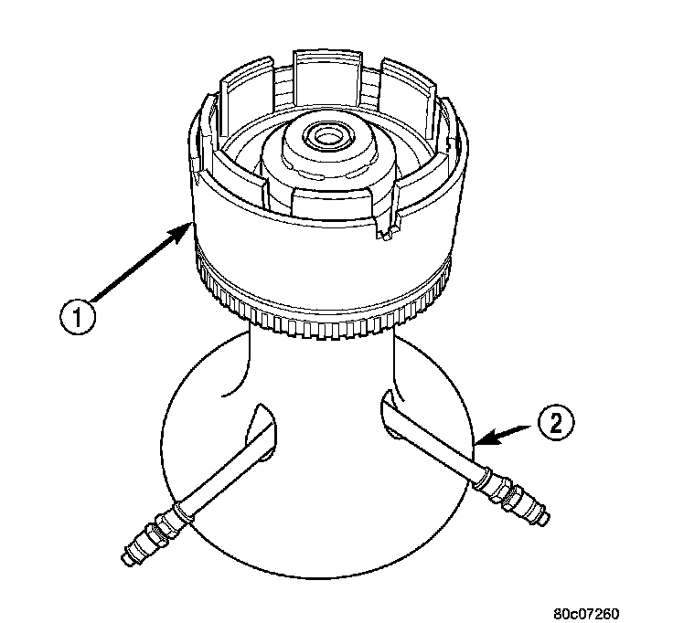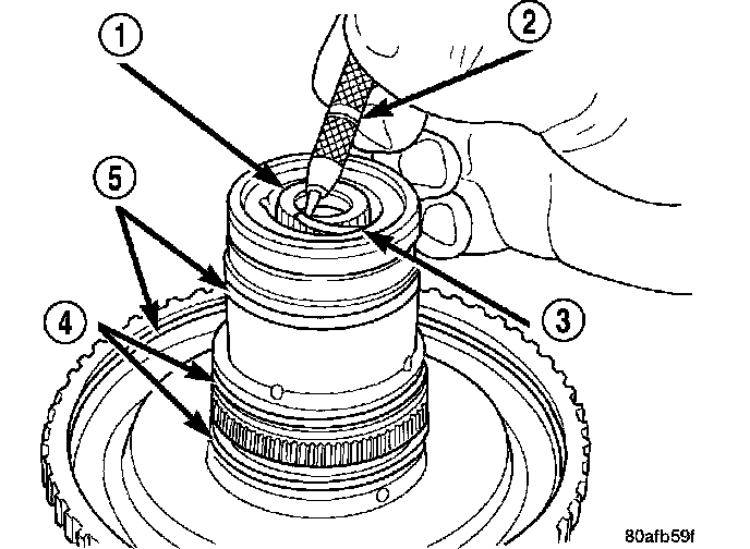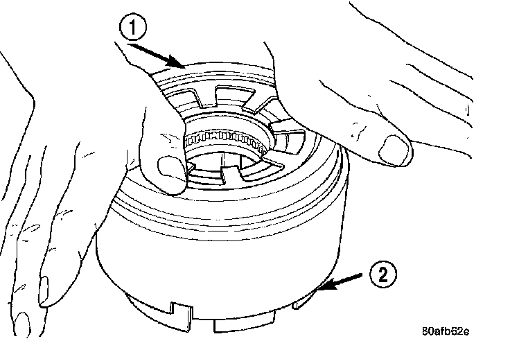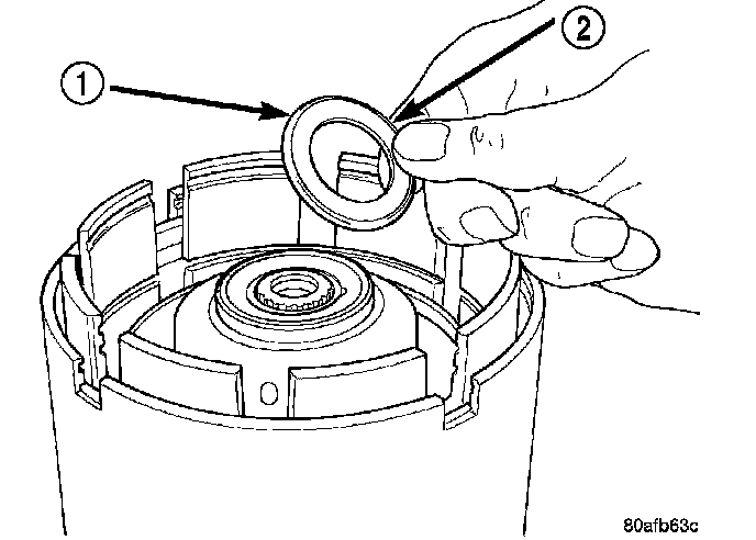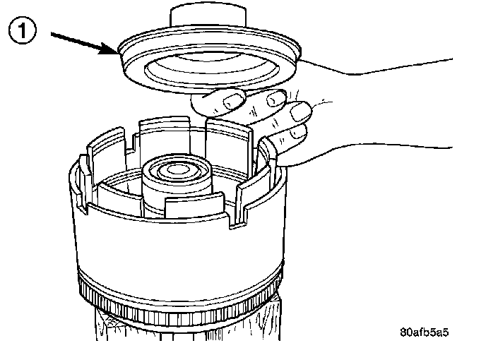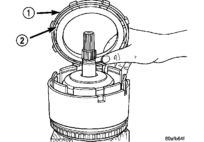 5. Install the OD/Reverse piston (1) assembly to the input clutch retainer (2).
