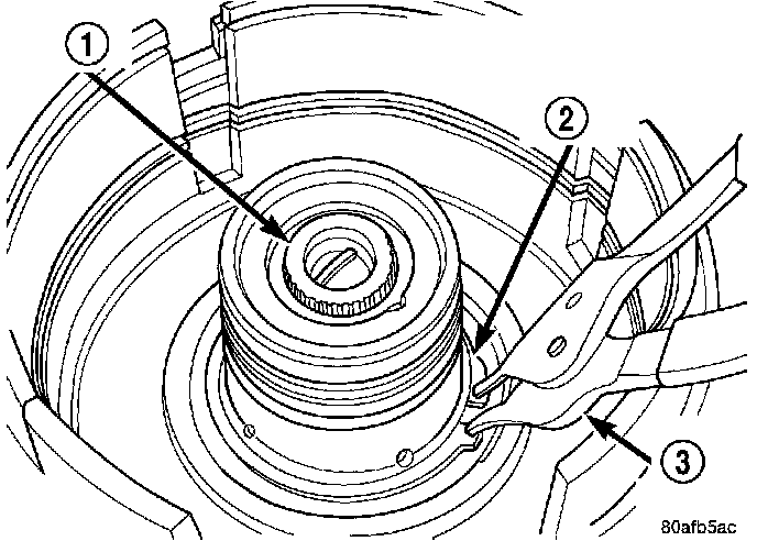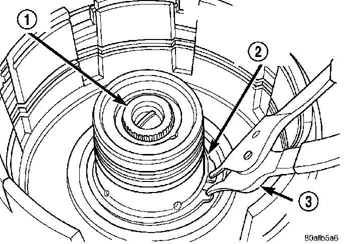 3. Remove reverse clutch snap ring (3).