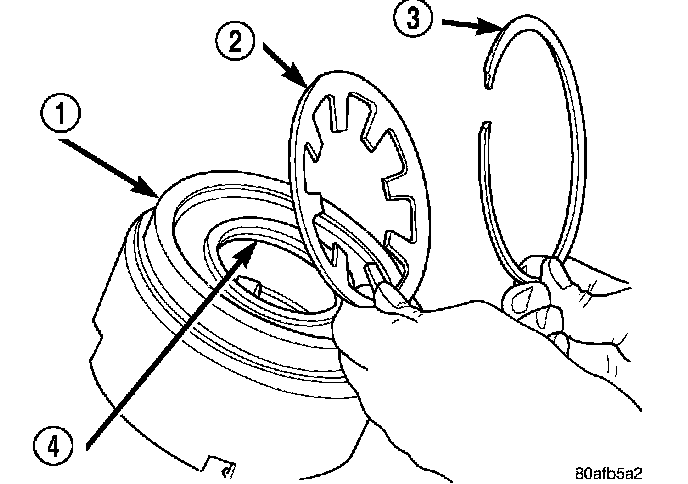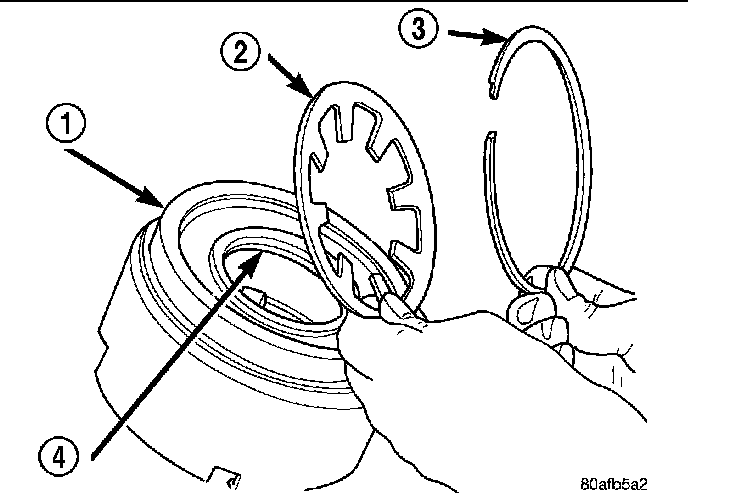 17. Seat tapered snap ring (1) to ensure proper installation.