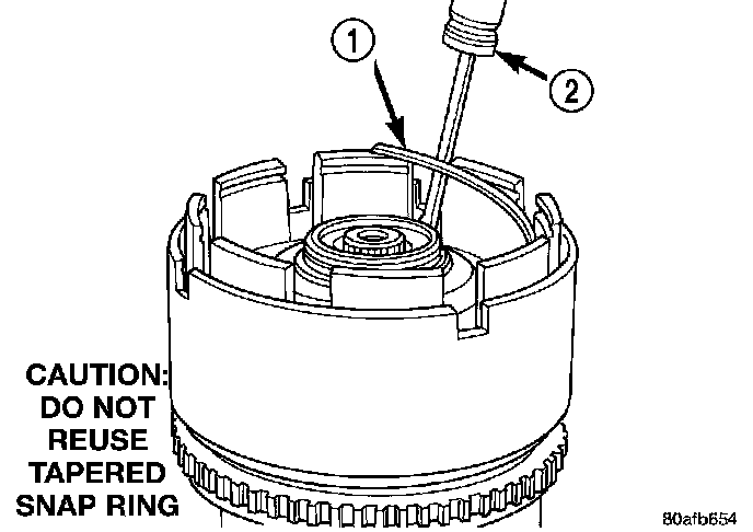 15. Remove the OD/UD reaction plate tapered snap ring (1).