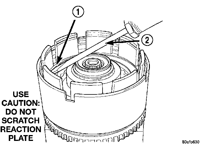 4. Pry up reverse clutch reaction plate (1).