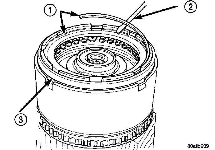 27. Install OD reaction plate flat snap ring (3).
