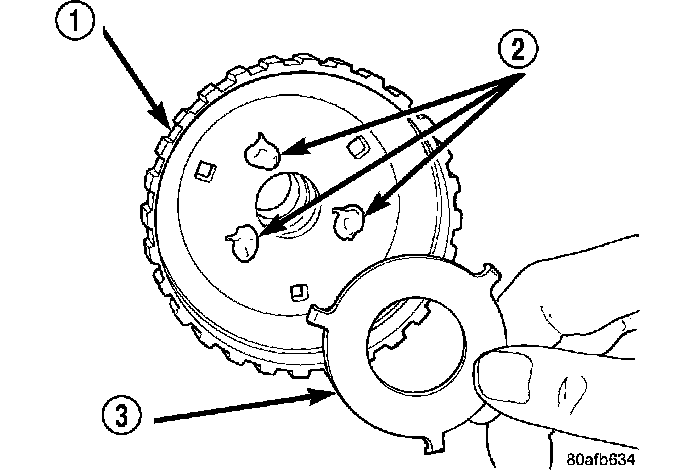 12. Remove and inspect number 3 and 4 thrust plates (1, 3).