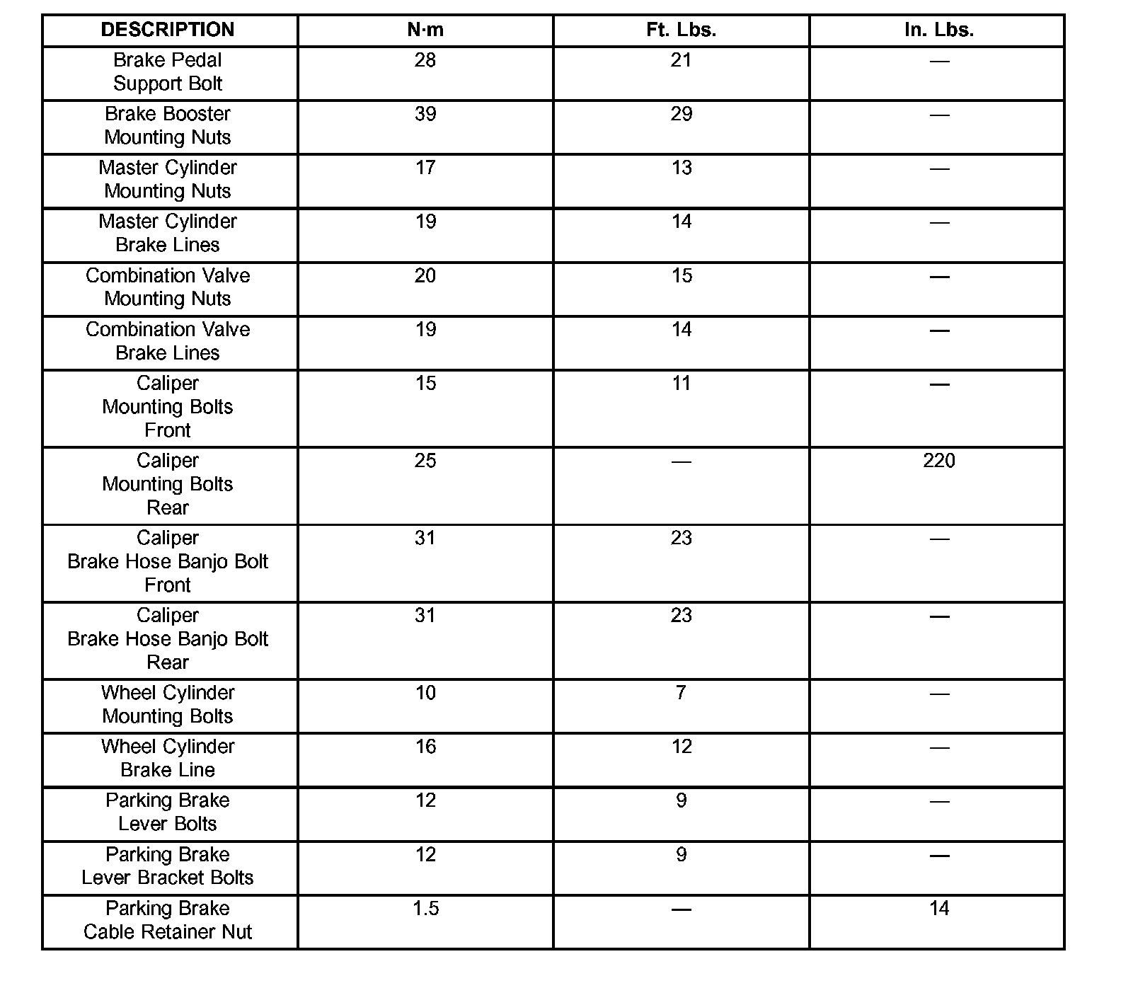 Torque Specifications: