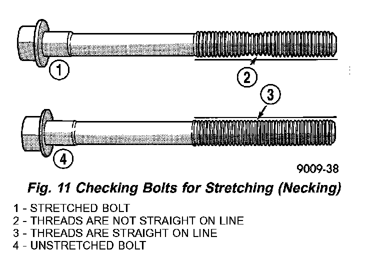 Cylinder Head BoltNOTE: The cylinder head bolts should be examined BEFORE reuse. If the threads are necked down, the bolts must be replaced.