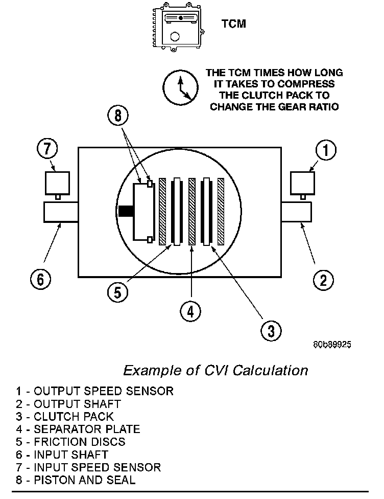 An important function of the TCM is to monitor Clutch Volume Index (CVI). CVIs represent the volume of fluid needed to compress a clutch pack.