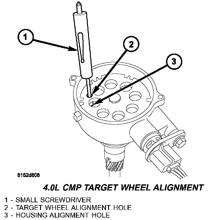 3. If installing a new oil pump drive assembly, is supplied with a temporary alignment pin (2) to prevent the target wheel from rotating. remove this pin until oil pump drive assembly been installed.