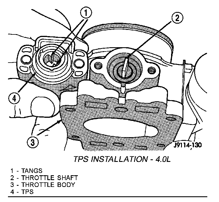The throttle shaft end of the throttle body slides into a socket in the TPS. The TPS must be installed so that it can be rotated a few degrees. (If the sensor will not rotate, install the sensor with the throttle shaft on the other side of the socket tangs). The TPS will be under slight tension when rotated.