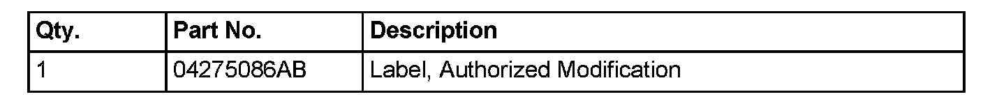 2. Type the necessary information on the "Authorized Modification Label" p/n 04275086AB and attach it near the VECI label.