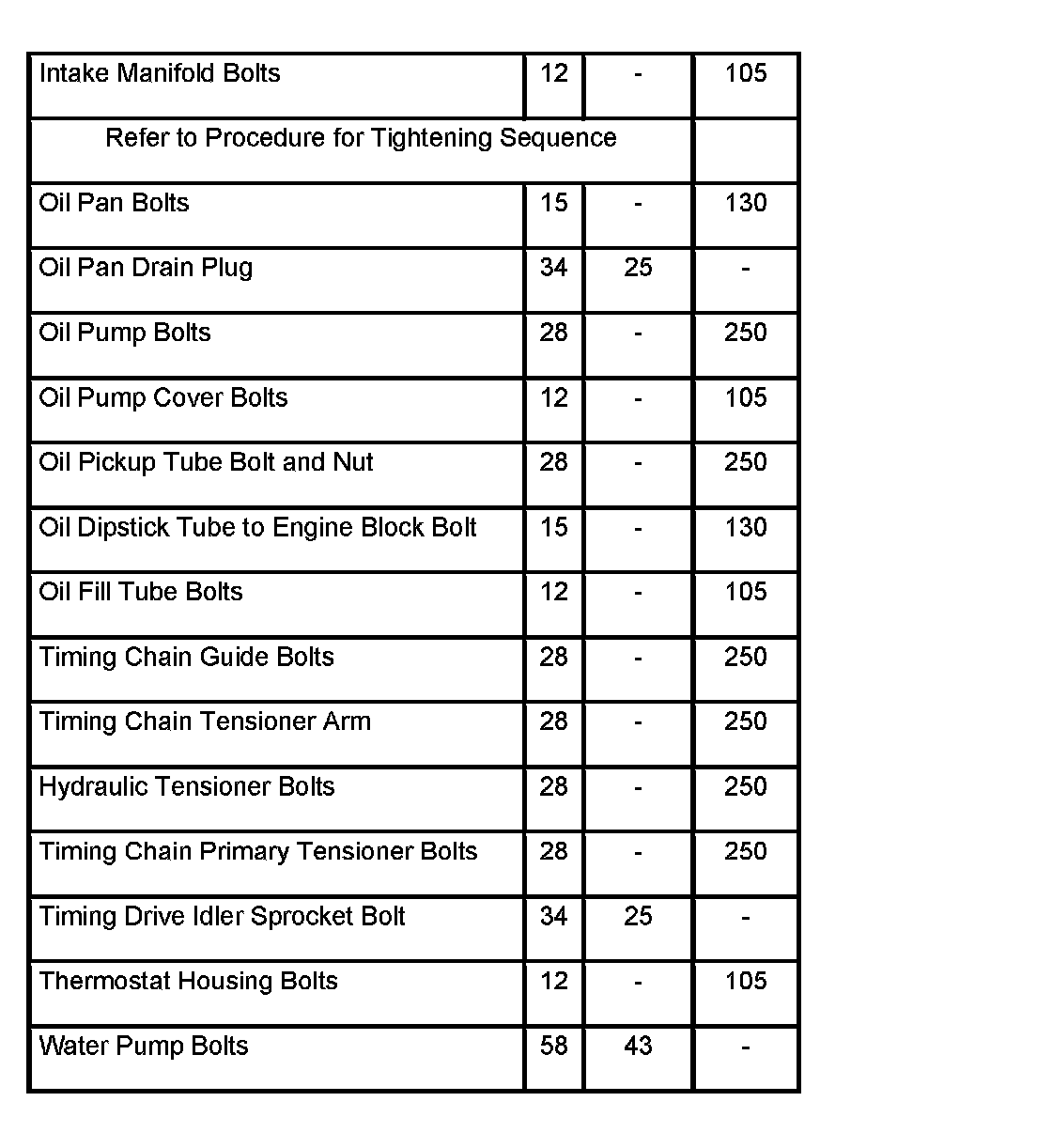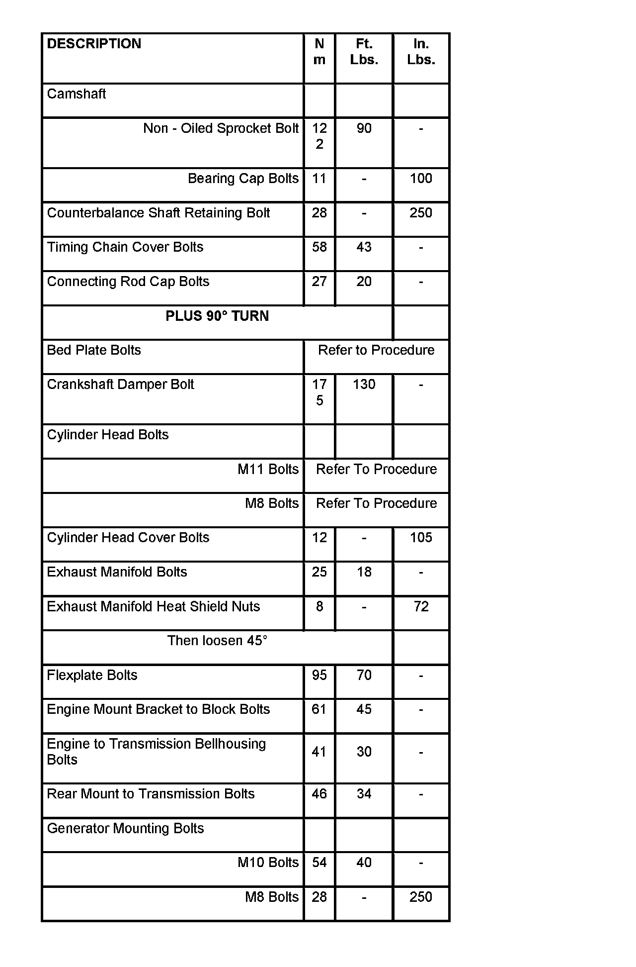 Engine Torque Specifications