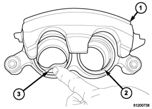 2. Install new piston seals (3) into caliper bores (2).