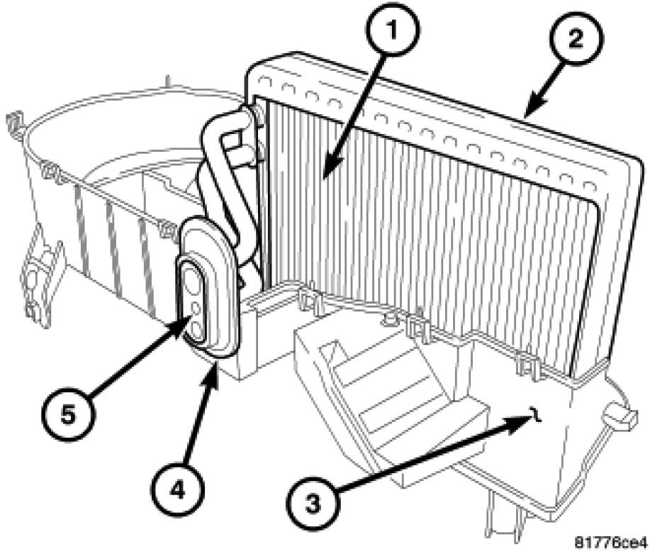 NOTE: The HVAC housing assembly must be removed from vehicle and disassembled for service of the A/C evaporator.