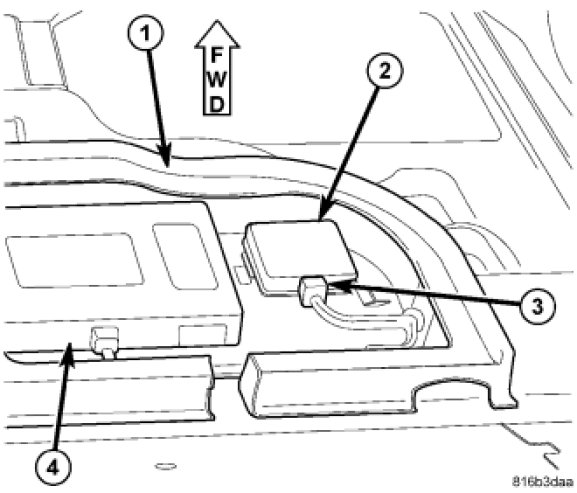 3. Reconnect the body wire harness connector (3) to the module connector receptacle.