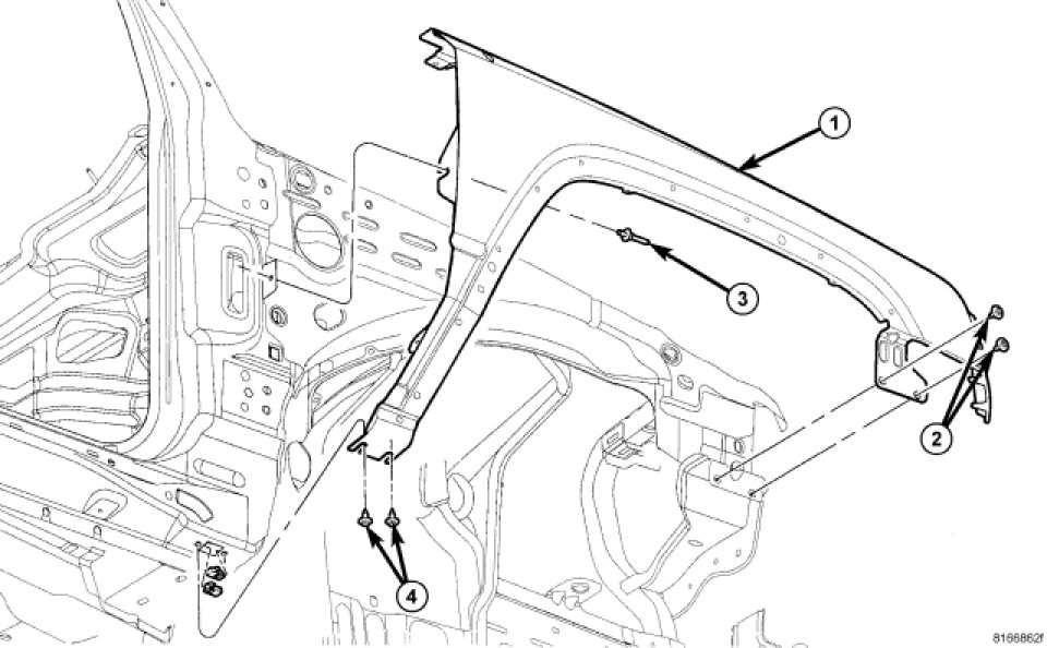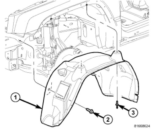 1. Position the antenna body (3) through the mounting hole in the top of the fender.