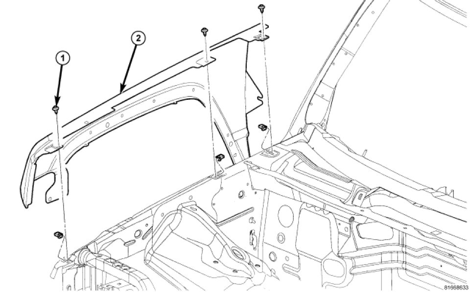 5. Install front fascia (1) as necessary, Front Fascia - Installation.