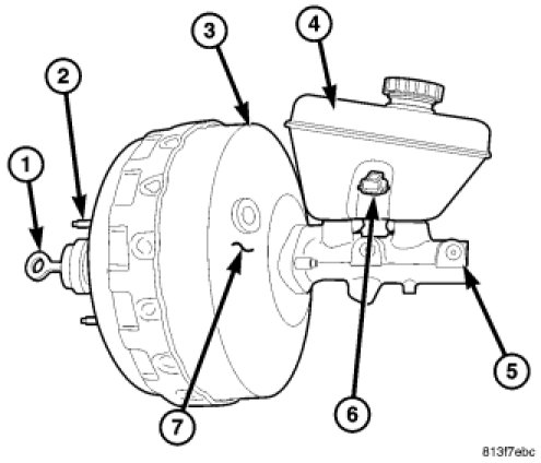 Always clean the master cylinder reservoir (4) and cap before checking fluid level. If not cleaned, dirt could enter the fluid.
