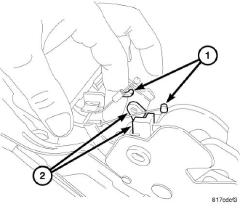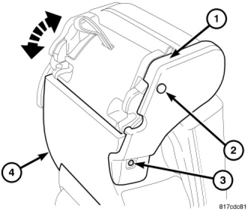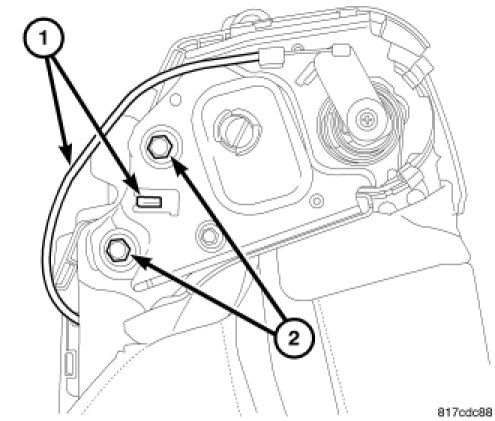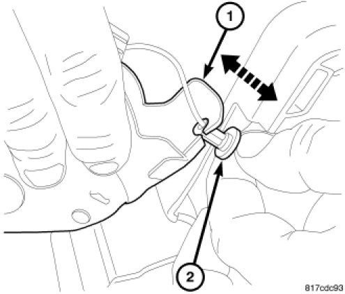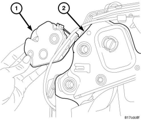 3. Position the latch assembly (1) back into the seat frame assembly (2).