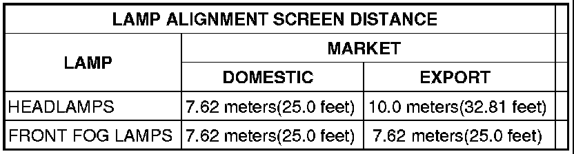 NOTE: A properly aimed front fog lamp will project a pattern on the alignment screen 100 millimeters (4 inches) below the fog lamp centerline and straight ahead of the lamp.