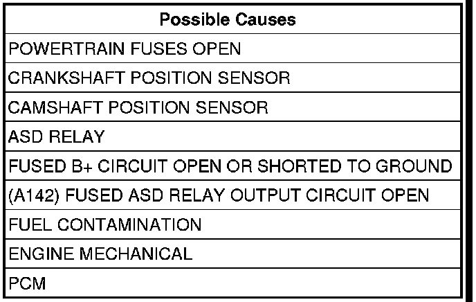 NOTE: Verify no codes are set in the Occupant Restraint Controller. If codes are present, they may be the cause of a No Start condition.