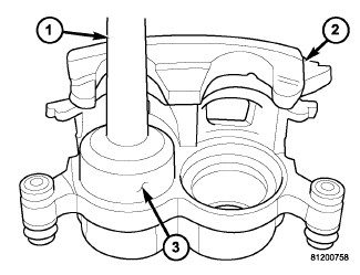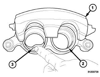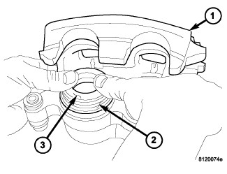 5. Install piston (3) into caliper bore and press piston down to the bottom of the caliper bore by hand or with hammer handle.