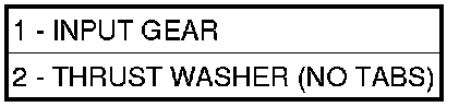 10. Install the top thrust washer (no tabs) (2) onto the input gear (1).