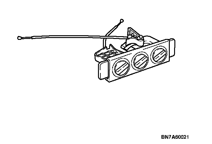 7. Disconnect the fresh air/recirculation cable from the blower motor assembly by carefully depressing the plastic tab and remove the cable from the retaining clip.