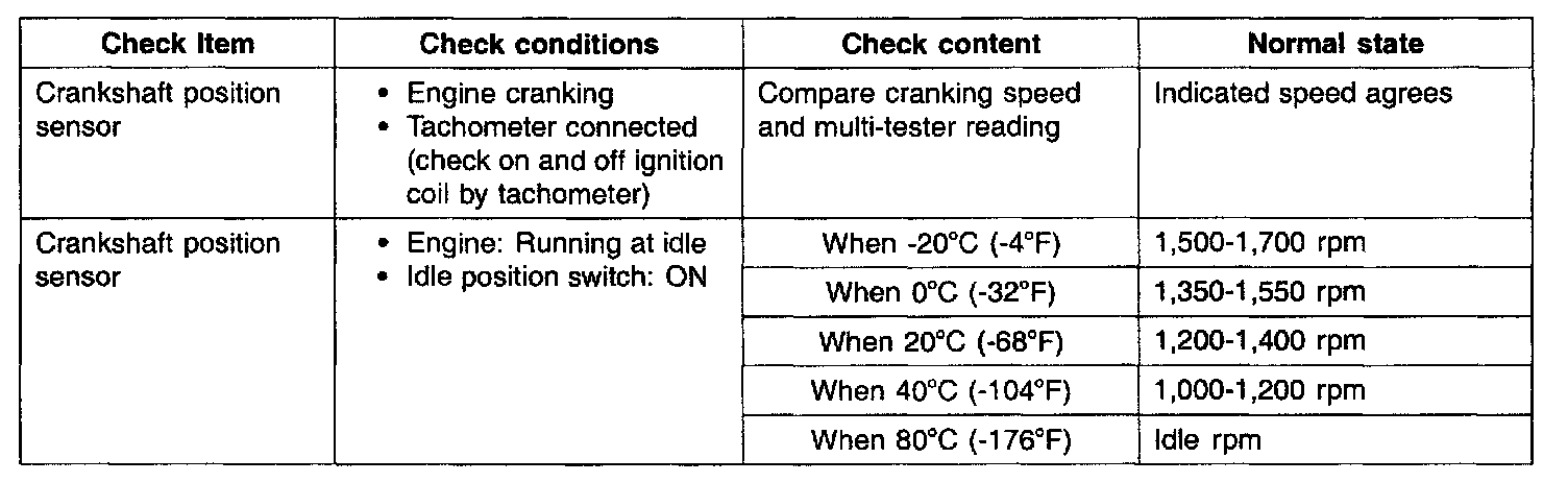3. If the engine can be run at idle even if the crank angle sensor reading is out of specification, check the following: