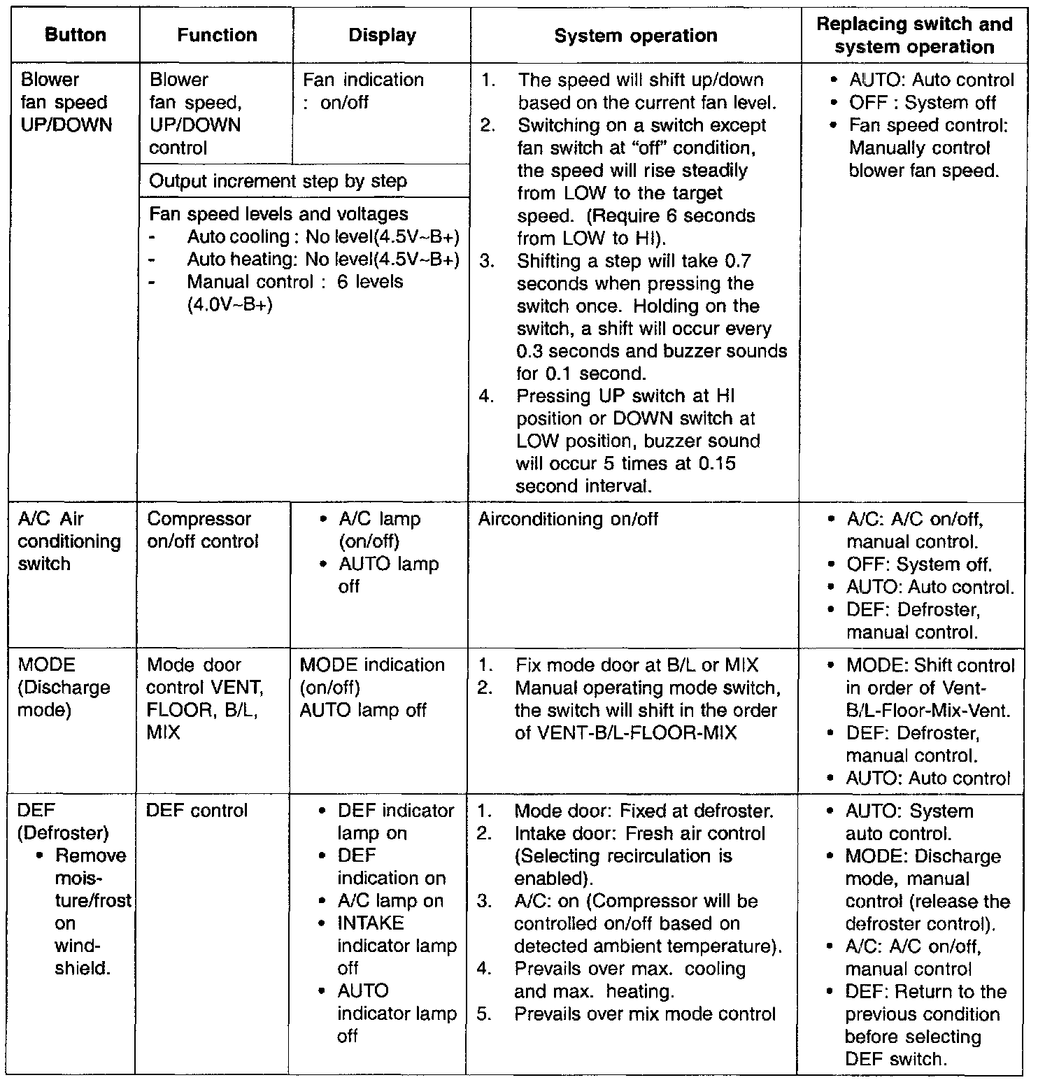 1. Full auto air conditioning system: One-touch button type.