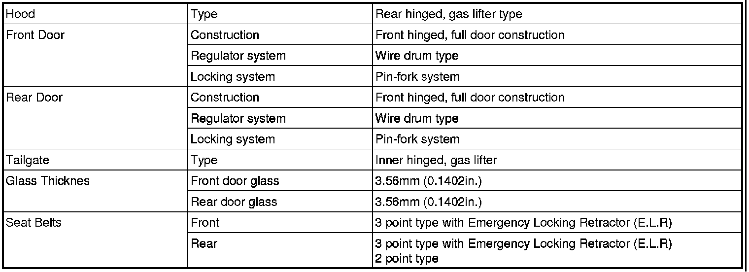Body and Frame: Specifications