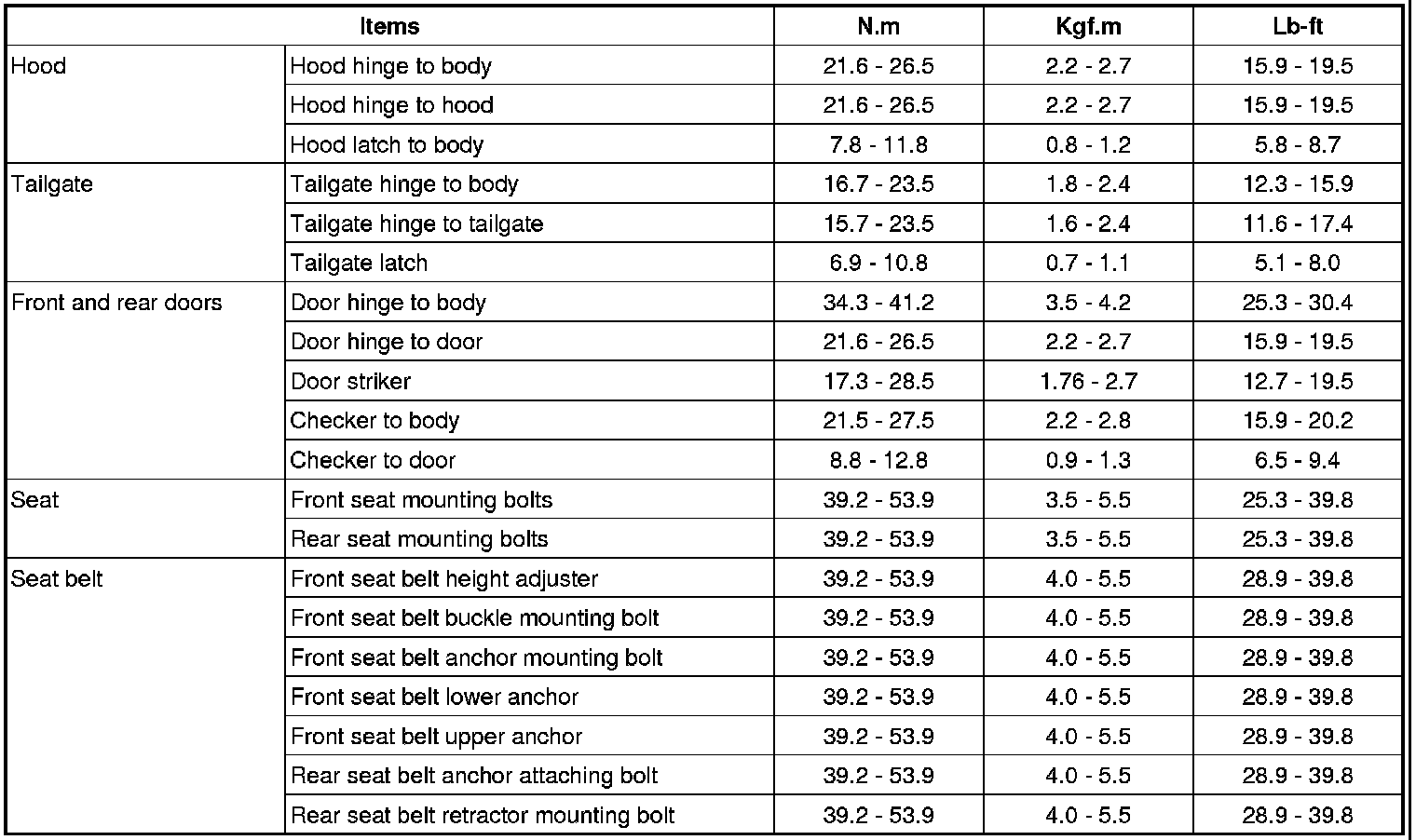 Tightening Torque